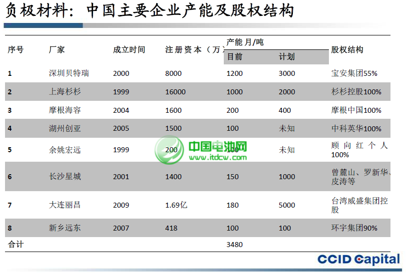 2012年中國負極材料產能擴張勢頭加速,實際產能達到3480噸/月,年產量達41760噸。
