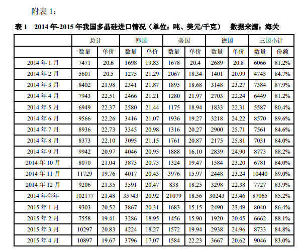 據(jù)海關(guān)統(tǒng)計(jì)數(shù)據(jù)顯示,2015年4月份我國(guó)多晶硅出口為770噸,環(huán)比大幅增加348%。