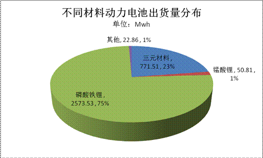 目前電池類型主要為磷酸鐵鋰和三元材料,兩者累計出貨量達3.34Gwh,占比總量的97.66%。對比兩種電池材料的應(yīng)用領(lǐng)域看,兩者在乘用車、客車、專用車領(lǐng)域均有分布,但磷酸鐵鋰電池主要集中應(yīng)用于客車、乘用車領(lǐng)域,兩部分電池出貨量分布為1.5Gwh 和1Gwh,均超過1Gwh,占比磷酸鐵鋰電池總量(2.57Gwh)的97%;而三元材料電池受制于政府此前暫停三元鋰電池客車列入新能源汽車推廣應(yīng)用推薦車型目錄,使得該類型電池主要集中應(yīng)用于乘用車領(lǐng)域。