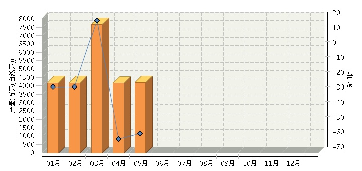 1-5月堿性蓄電池行業累計完成產量同比增長-35.30%