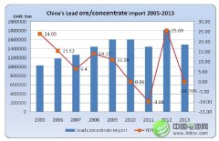 據中國海關總署公布的數據顯示,2013 年中國鉛礦砂及精礦進口量為149.3萬噸,同比下降17.76%。 ... 查閱全文