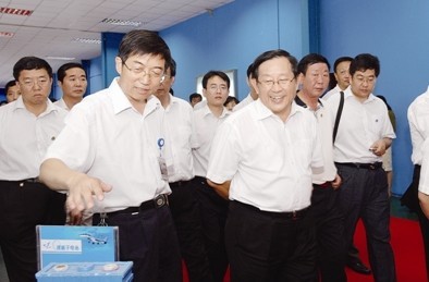 王崇嶺向科技部部長(zhǎng)萬(wàn)鋼介紹中航鋰電