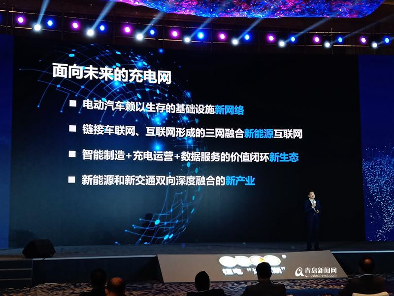 特銳德董事長于德翔介紹“面向未來的充電網”概念。