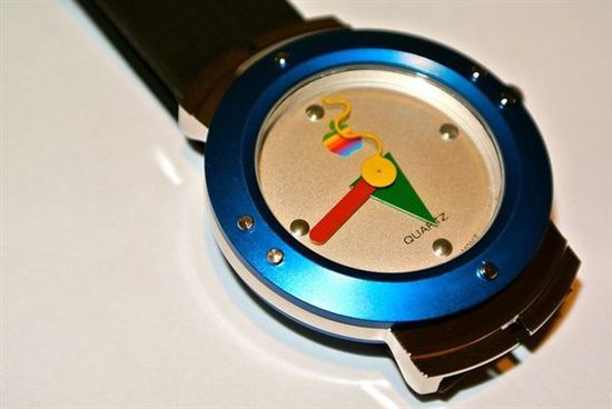 它是蘋果發(fā)布Macintosh7.5系統(tǒng)時(shí)隨之附贈(zèng)的兩款贈(zèng)品之一,表面醒目的logo還是那第一顆被咬掉的“蘋果”。指針、表盤、表圈的配色都取自logo,俏皮中不失協(xié)調(diào)。更為關(guān)鍵的是,“QUARTZ”的字樣告訴我們,這還是一款能換電池的石英表。