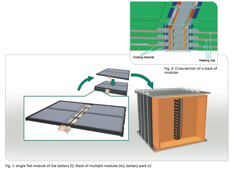 電池組還能通過電池單元外表面覆蓋的一層加熱墊對電池單元進行加熱。當溫度低于5℃時,電池單元將無法進行充電,這時加熱墊就派上用場了。在電池的充放電過程中,電池單元的體積會發生變化,因此在電池組內安裝有均質的可壓縮泡沫層對此進行補償性尺寸調節,從而保證電池組的安全。泡沫層填充在兩個組件相鄰的電池單元之間,能夠增加摩擦力,防止電池單元滑動,減小導體上的機械應力,平均分配平板電池組件間的應力。