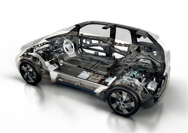 對于電動汽車,車輛的自身質量具有非常重要的意義,這是由于在有限的電池容量和能耗情況下,其直接影響行駛里程。寶馬專為i系列車型開發的LifeDrive構架為這一問題提供了一個理想的解決方案。LifeDrive構架由兩個水平分離、且相互獨立的模塊構成:Life模塊為采用碳纖維加固塑料(CFRP)制成的超輕高強度乘員艙;Drive模塊由搭載蓄電池和驅動系統的鋁質底盤組成。LifeDrive架構的應用有效平衡了電池組的質量,使車身的整備質量僅為1195kg。對于電動車而言,這樣的數據實屬不易,要知道采用傳統燃油的奧迪A1都達到了1215kg,而奔馳A 180則為1395kg。輕量化設計給車輛帶來的好處不言而喻,但這也使我們有一絲擔憂:這樣輕質的車身足夠安全嗎?車身必須輕,同時必須安全,這貌似有些矛盾,但寶馬利用LifeDrive架構讓安全性和輕量化實現了最優化。憑借著CFRP材料,i3擁有著類似于F1賽車的駕駛艙,即使在高速碰撞條件下,也能夠為乘員提供完整的生存空間。