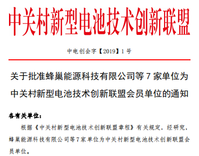 關于批準蜂巢能源科技有限公司等7家單位為中關村新型電池技術創新聯盟會員