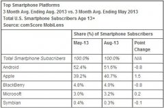 北京時間10月5日消息,據TheNextWeb網站報道,市場調研公司comScore發布截止8月上季度的最新美國智能 ... 查閱全文