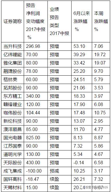 相比于近期股價(jià)上升的個(gè)股占據(jù)絕大多數(shù)來(lái)說,也有個(gè)別股票出現(xiàn)下跌。6月以來(lái),55只概念股中,僅5只出現(xiàn)下跌,其中時(shí)代萬(wàn)恒和天際股份已發(fā)布中報(bào)業(yè)績(jī)預(yù)告,時(shí)代萬(wàn)恒下跌15.2%居跌幅榜首,該公司中報(bào)預(yù)計(jì)續(xù)虧,因林業(yè)子公司是否盈利存在不確定性以及隨著新建九夷鋰能公司廠房建設(shè)、設(shè)備投資的逐步展開期間費(fèi)用增加,所以預(yù)計(jì)公司累計(jì)凈利潤(rùn)可能為負(fù)。天際股份則小幅下跌0.14%,該公司預(yù)計(jì)實(shí)現(xiàn)凈利潤(rùn)1.28億元至1.41億元,增長(zhǎng)幅度為3.8倍至4.3倍。值得特別關(guān)注的是,該公司預(yù)增幅度僅次于國(guó)光電器,居于第2位。