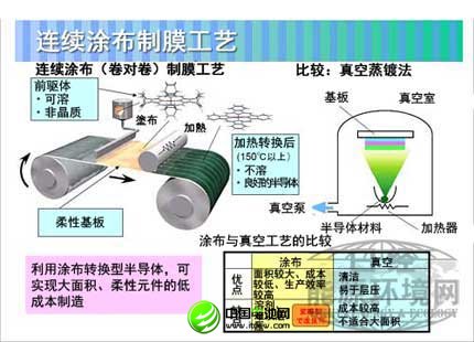 此前作為有機(jī)薄膜太陽(yáng)能電池的制造方法,一般采用的是“真空蒸鍍法”。真空蒸鍍法的缺點(diǎn)在于,由于需要大型制造裝置,因此生產(chǎn)成本較高,而且難以實(shí)現(xiàn)較大的面積。