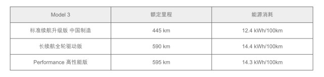 特斯拉中國官網公布的特斯拉Model 3在售車型的續航里程