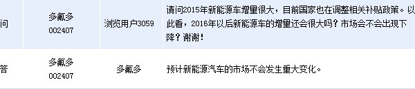 周一晚間多氟多(002407)在全景網(wǎng)互動平臺上表示, 預(yù)計新能源汽車的市場不會發(fā)生重大變化。