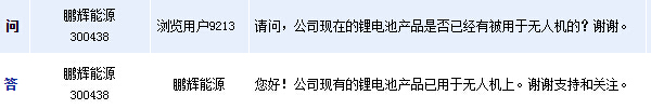 鵬輝能源:現有鋰電池產品已用于無人機