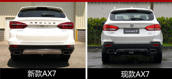 新款A(yù)X7尾部改動不大,后保險杠以及霧燈經(jīng)過重新設(shè)計,尾燈之間的“雙飛燕”LOGO被英文標(biāo)識代替,尾燈組內(nèi)部也采用全新設(shè)計。