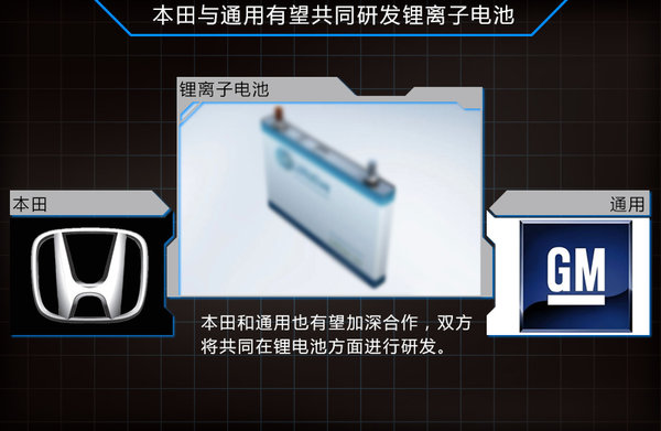 本田和通用在新能源領域均推出了一系列車型,隨著這一細分市場的需求不斷增加,研發鋰離子電池所需要的高額成本也是一直困擾雙方最重要的問題。上海通用凱迪拉克市場營銷部陳海波在接受網通社采訪時表示:“鋰電池的研發是一個非常復雜的過程,未來通用還會與其他合作伙伴合作研發電池。”2013年7月,本田與通用就共同研發燃料電池車型一事達成合作,而雙方的合作或將進一步加強,尋求在鋰電池技術方面的突破。