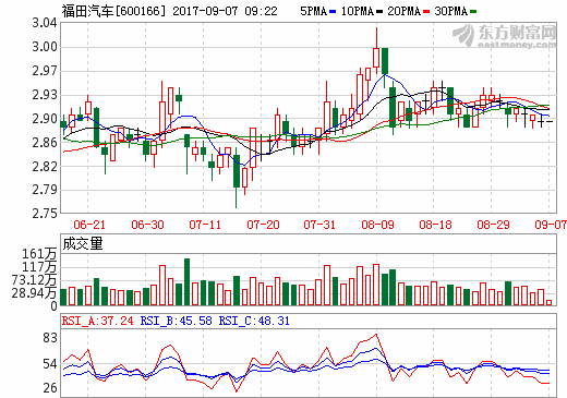 福田汽車前八月生產新能源汽車6930輛 銷售6587輛