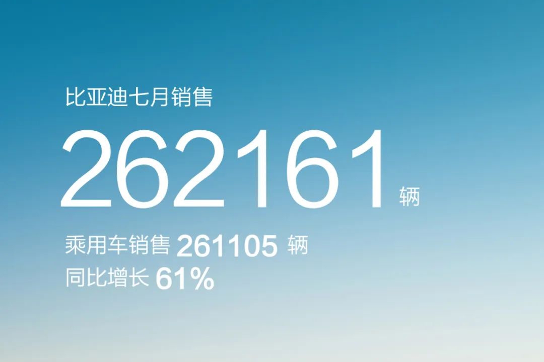 7月,比亞迪共銷售汽車約26.22萬(wàn)輛,同比增長(zhǎng)61.3%;新能源汽車動(dòng)力電池及儲(chǔ)能電池裝機(jī)總量約為 ... 查閱全文