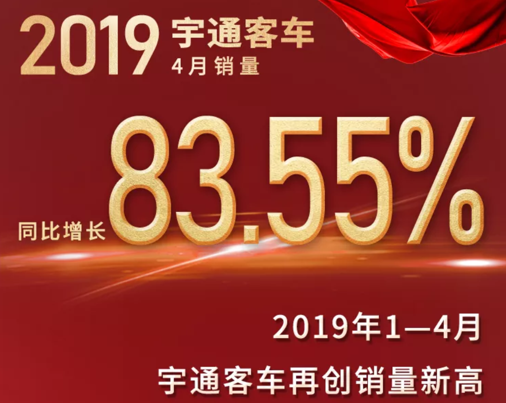 宇通客車2019年4月銷量同比增長83.55%,以實力品質再創銷量新高,2019年累計銷量突破16000輛,同比增 ... 查閱全文