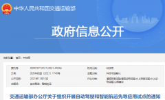 聚焦自動駕駛和智能航運 交通運輸部啟動先導應用試點