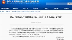 工信部公示《鉛蓄電池行業規范條件(2015年本)》第三批企業名單