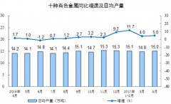 4月份十種有色金屬產量451萬噸 增長5.0%