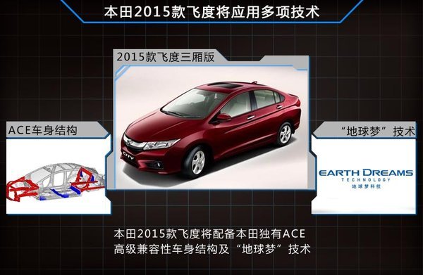 在2014年底特律車展上,本田也發(fā)布了全新飛度車型,新車將配備本田獨(dú)有的ACE高級(jí)兼容性車身結(jié)構(gòu),這是本田引以為傲的G-CON技術(shù)上革新發(fā)展而來 的新一代車身技術(shù)。能使車輛在發(fā)生碰撞的時(shí)候能夠充分吸收撞擊的能量,保持車輛的安全性能。動(dòng)力方面,全新飛度將應(yīng)用“地球夢(mèng)”科技,并搭載汽油發(fā)動(dòng)機(jī)和 混動(dòng)版多種動(dòng)力系統(tǒng),進(jìn)一步提升燃油經(jīng)濟(jì)性。