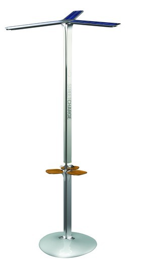 紐約市的居民以后有福了,太陽能廠商Goal Zero, 設(shè)計公司Pensa聯(lián)手運營商AT&T正在籌建街邊充電站,外形設(shè)計像一個高個的金屬桿。配置6個USB端口和3個小支撐架。金屬桿頂部是一個15瓦的太陽能電池板,另外電池板內(nèi)部有一個168瓦時的鋰電池,確保充電站在晚上或者陰天的時候有足夠的電力給路過的群眾充電。