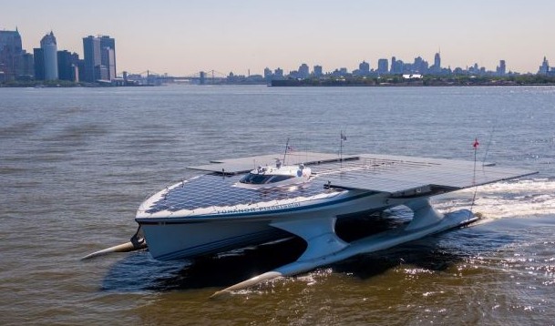 英國《每日郵報》報道,世界上最大的太陽能船“圖蘭星球太陽”號亮相倫敦,現停靠在金絲雀碼頭。9月2日,這艘太陽能船將啟程前往巴黎。“圖蘭星球太陽”號采用輕量碳纖維結構,裝有809塊太陽能電池板(29124塊太陽能電池),光伏電池板面積達到512平方米。這艘生態船曾在22天內橫渡大西洋,打破此前的吉尼斯世界紀錄,前紀錄為26天。