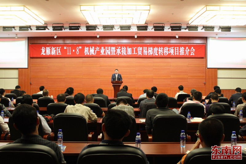 東南網11月7日龍巖訊(本網記者 游雯星)7日下午,龍雁新區“11?8”機械產業園暨承接加工貿易梯度轉移項目推介會在龍巖人民大會堂舉行,自珠三角和閩南金三角的客商等100多人出席推介會。機械制造、食品加工等10個項目上臺簽約,其中外資項目3個,簽約合同金額達29.8億人民幣,其中外資金額2.2億美元。