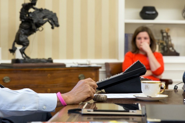 AMX NXT-CA7桌面觸摸板,讓奧巴馬抬頭就可以看見最新消息。
