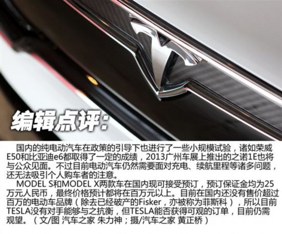 當國內純電動汽車的研發工作正在大張旗鼓地進行中時,遠在大洋彼岸的TESLA在2008年就已將電動汽車轉變為具有實際使用意義的量產車型。而在2014年初,TESLA的第三款車型Model X即將與公眾見面,而今天,我們在美國的TESLA經銷商處就已經見到了這款全新的Model X。