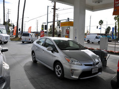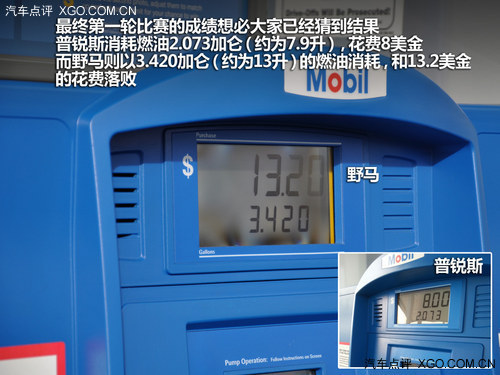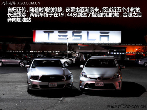 好了,言歸正傳,隨著時間的推移,夜幕也逐漸襲來,經(jīng)過近五個小時的長途跋涉,兩輛車終于在19:44分到達了指定的目的地,合照之后奔向加油站,此時野馬的油量已經(jīng)消耗大半,加滿后大約花費30美金,如果再加上第一次加油的花費和午餐費用,對于野馬來講,之前的50美金已經(jīng)所剩無幾了,晚餐?別想了!而普銳斯,在完成了兩次加油和午餐的花費之后,還剩余了13美金左右,所以輸贏已經(jīng)很明顯了。