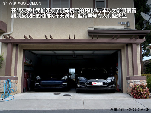 從Fremont工廠到朋友家中的路程并不長,車內(nèi)“電表”顯示消耗了大概30英里的電量,而實際路程只有20英里左右。在朋友家中我們連接了隨車攜帶的充電線,本以為能夠借著跟朋友敘舊的時間將車充滿電,但結(jié)果卻令人有些失望。