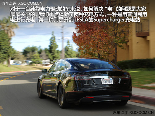 對于一臺純靠電力驅(qū)動的車來說,如何解決“電”的問題是大家最最關(guān)心的。我們重點體驗了兩種充電方式,一種是用普通民用電進行充電,第二種則是開到TESLA的Supercharger充電站。