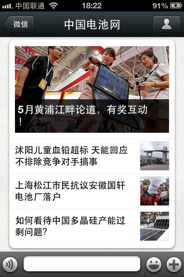 中國電池網的微信(微號:mybattery)已經運行有6個月了,半年來機構、企業用戶增加到近兩千,個人用戶也達到一千多,相比于動輒上萬、十幾萬的微號來說,或許微不足道,但對于中國電池