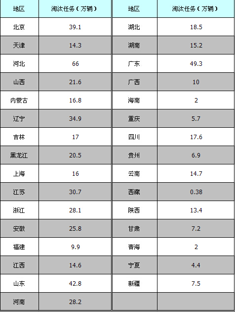 2014年各地區(qū)黃標車及老舊車輛淘汰任務