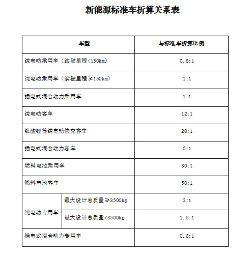 推廣數量以純電動乘用車為標準進行計算,其他類型新能源汽車按照相應比例進行折算。