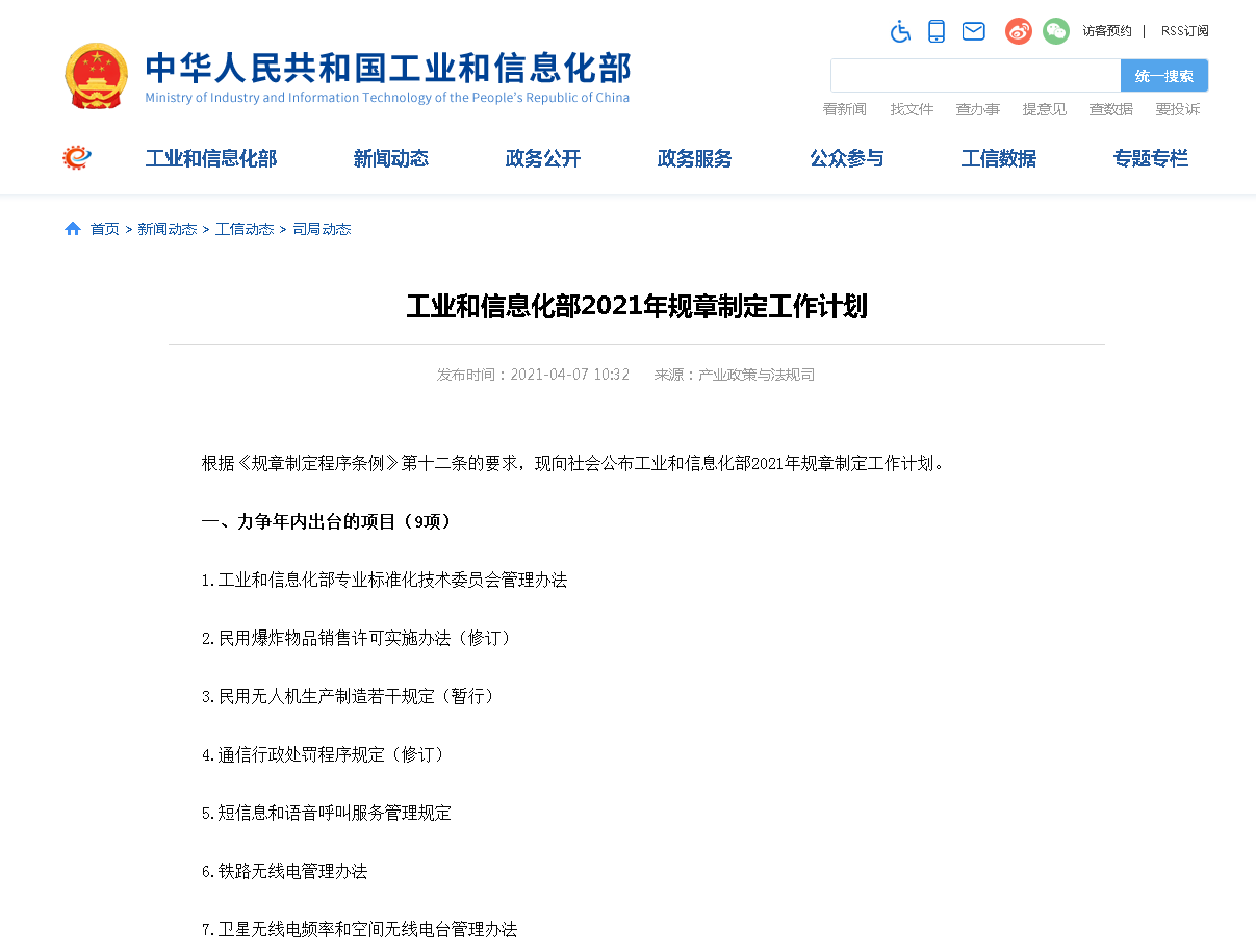 電池網了解到,工信部于4月7日發布了《工業和信息化部2021年規章制定工作計劃》。工作計劃顯示 ... 查閱全文