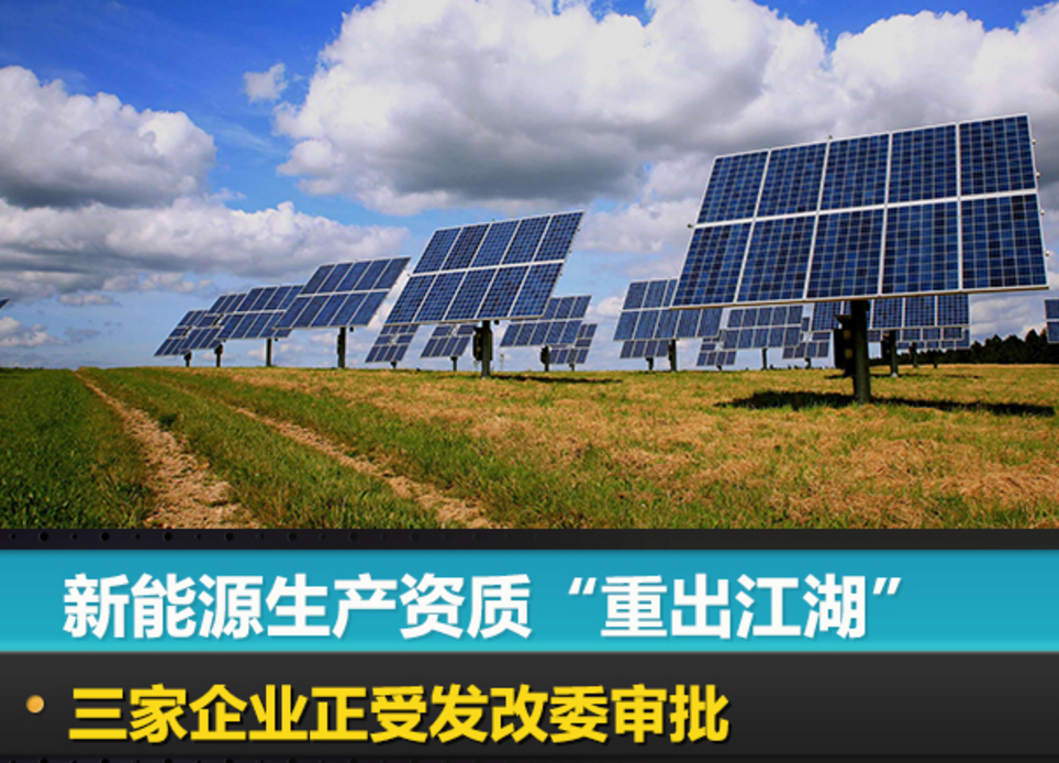 新能源生產資質“重出江湖” 三家企業正受發改委審批