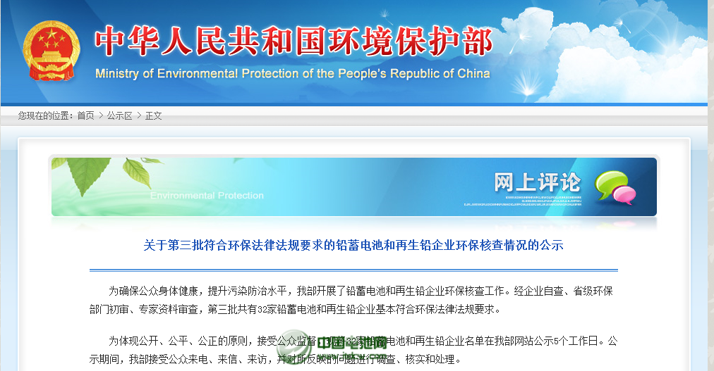 環保部:第三批鉛蓄電池和再生鉛企業環保核查情況公示