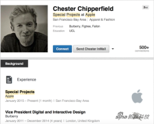 蘋果近期招聘了又一名時尚業(yè)的重量級人士,即巴寶莉數(shù)字及互動設(shè)計(jì)副總裁切斯特·奇普菲爾德(Chester Chipperfield)。...