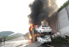 G50S高速公路上一輛由重慶開往杭州的5橋掛車在行駛至豐都收費(fèi)站附近時(shí),右后輪突然爆胎,并發(fā)生火災(zāi),火勢迅速蔓延,導(dǎo)致車上所載的14輛電動(dòng)轎車過半被燒毀,所幸消防方面迅速趕到后及時(shí)撲救,保住了其中6輛。...