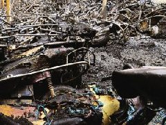杭州車庫起火 近300輛自行車和電動車燒成鐵架