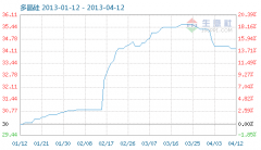 4月12日多晶硅商品指數為34.25,與昨日持平,較周期內最高點100.00點(2011-09-08)下降了65.75%,較2012年12月24日最低點29.12點上漲了17.62%。(注:周期指2011-09-01至今) 多晶硅商品指數自2013-3-25起,...