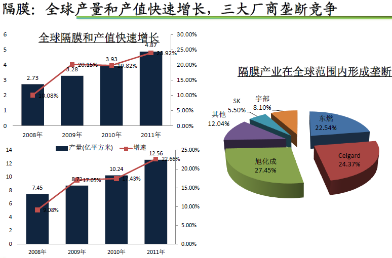 隔膜:全球產(chǎn)量和產(chǎn)值快速增長(zhǎng) 三大廠商壟斷競(jìng)爭(zhēng)