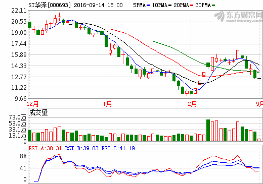 華澤鈷鎳在年報發布的同日披露了公司股票被實施其他風險警示的公告,其股票將于2016年5月3日停牌一天,2016年5月4日起實施其他風險警示,實施風險警示后的股票簡稱為“ST華澤”,實施其他風險警示后股票價格的日漲跌幅限制為5%。...