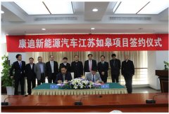 康迪電動汽車江蘇如皋項目簽約 吉利汽車李書福等出席