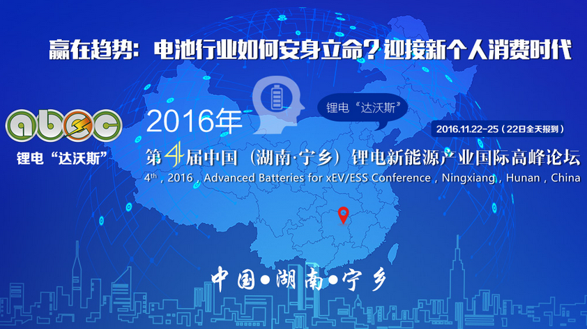 以“贏在趨勢:電池行業如何安身立命?迎接新個人消費時代!”為主題的2016年第4屆中國(湖南·寧鄉)鋰電新能源產業國際高峰論壇(ABEC 2016,鋰電“達沃斯”)將于2016年11月23日-25日(22日全天報到)在湖南長沙寧鄉高新區舉辦。...