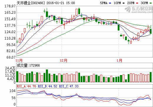 21日鋰電池概念股盤后統計 天齊鋰業跌停