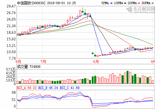 中信國安:上半年?duì)I收16.74億元 同比增長37.19%